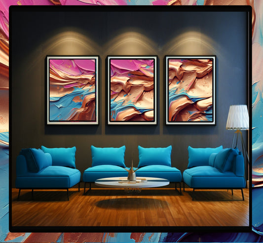 Golden & Blue Digital Art Collection: Abstract Undulating Shapes and Textures